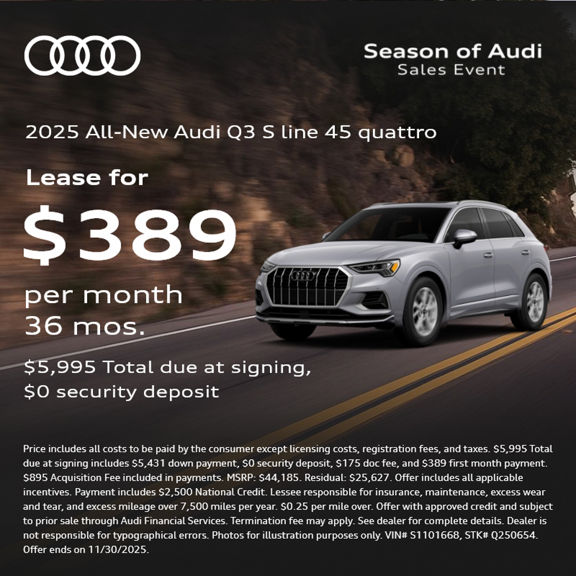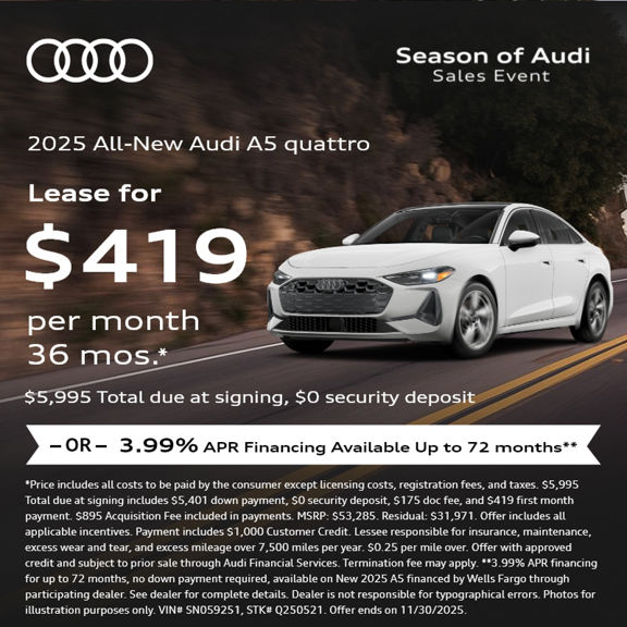 The Season of Audi is here. Take advantage of 1.99% APR on the new Q5.