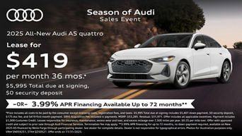 Our Audi specials change frequently, so if you see an offer that fits your needs, don’t wait. Specials are available only while inventory lasts, and many of our most popular Audi Q models sell quickly. Many of our lease specials and finance offers are tied to manufacturer incentives with strict expiration dates. Once they’re gone, they’re gone! So, don’t wait to secure your preferred model and trim.